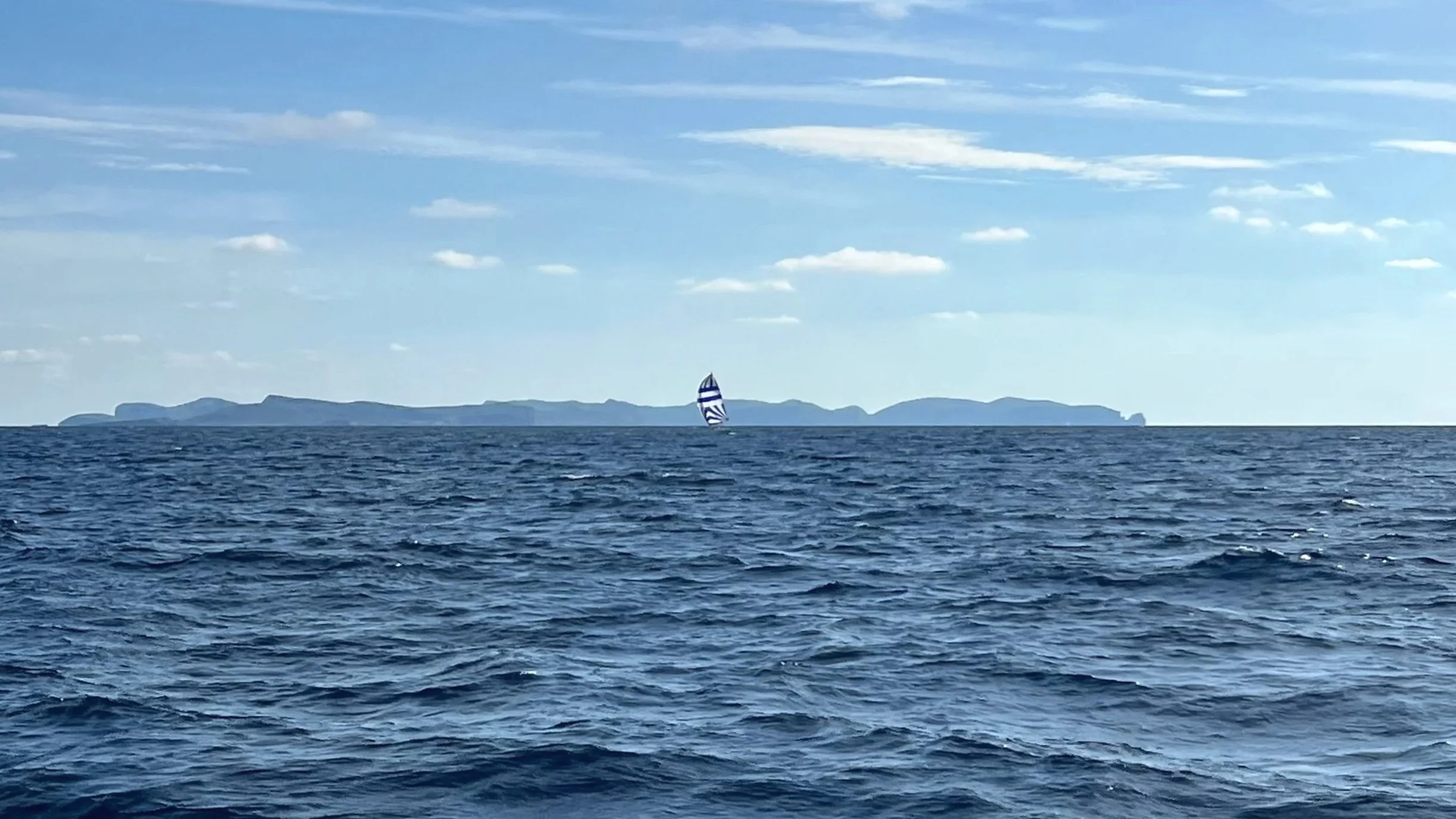 The miles slipped by, the sea relatively calm and the sky grey. Into her rhythm now, Bonnie Lass almost doing seven knots. We were quickly making good progress towards Cala Figuera. We rounded the most southern point of Mallorca, Cap de ses Salines, for the first time in a very long while, then headed northeast — a short hop up the coast to the entrance of Cala Figuera.
